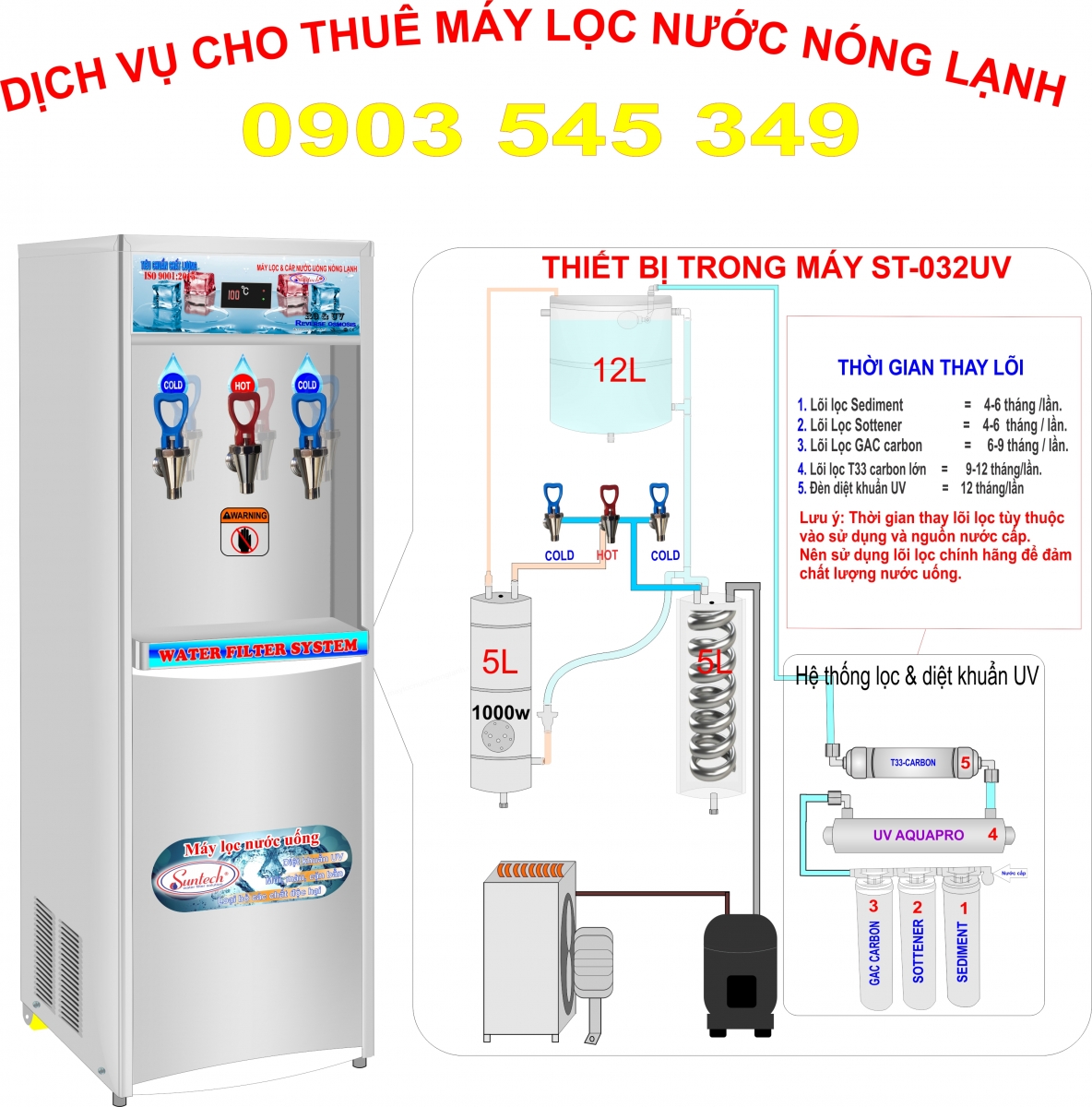 MÁY LỌC NƯỚC ST-032UV sử dụng được 80 - 100 người.