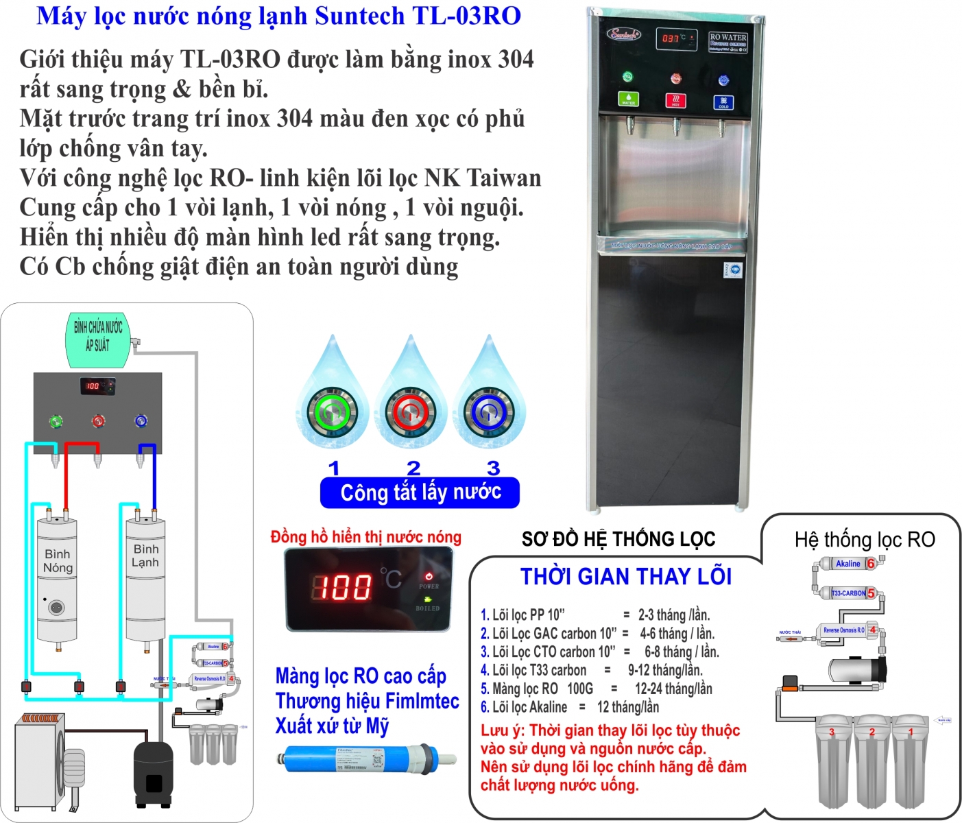Thông tin chi tiết máy lọc nước RO 3 vòi TL-03RO