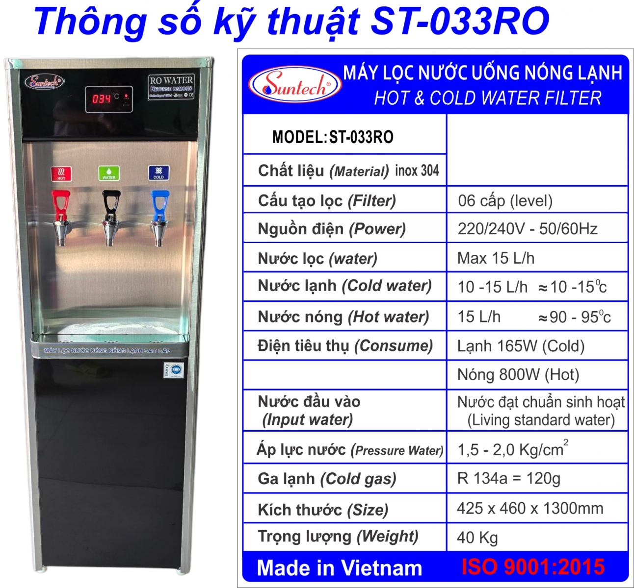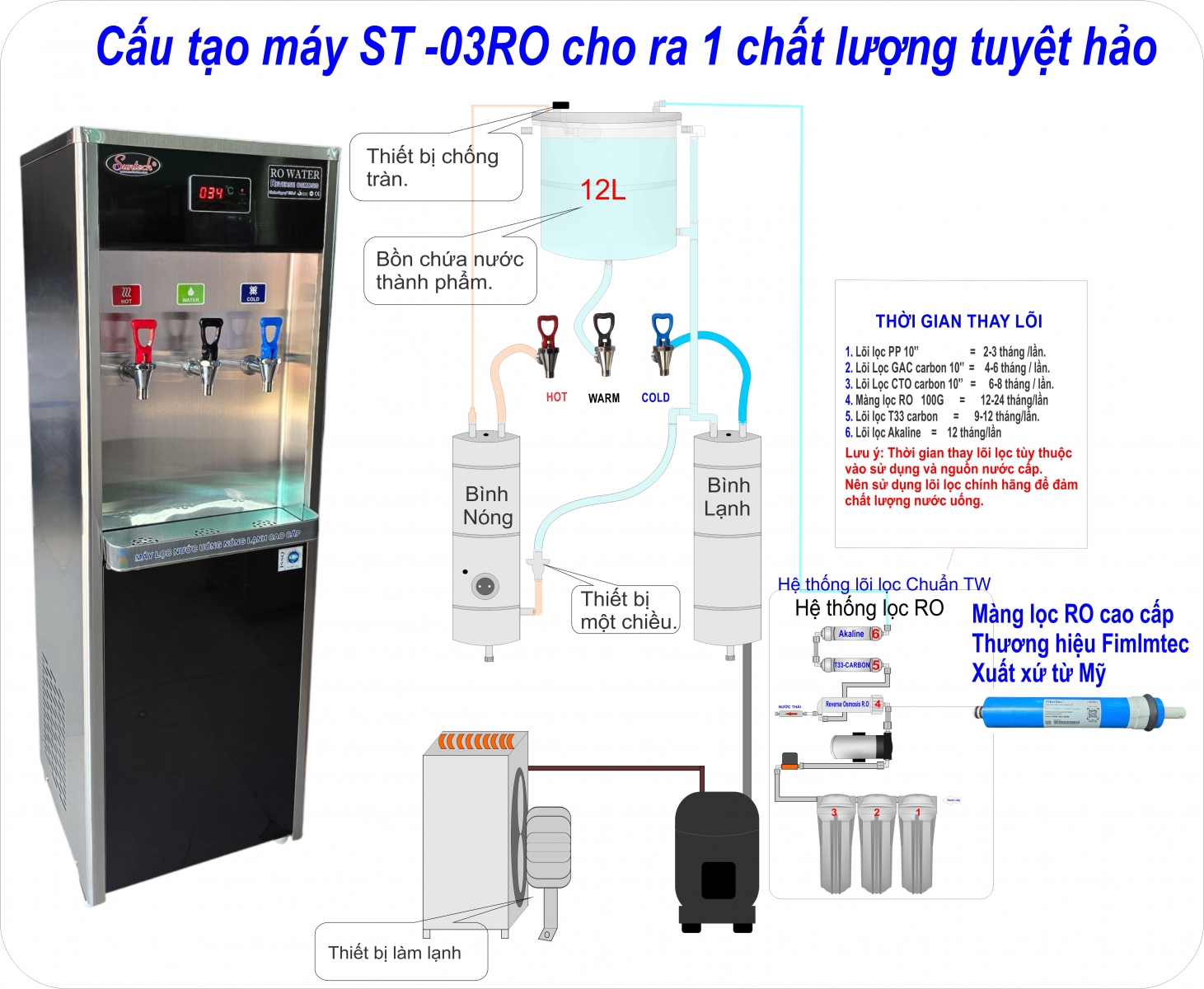 MÁY LỌC NƯỚC UỐNG NÓNG LẠNH 3 VÒI ST-033RO